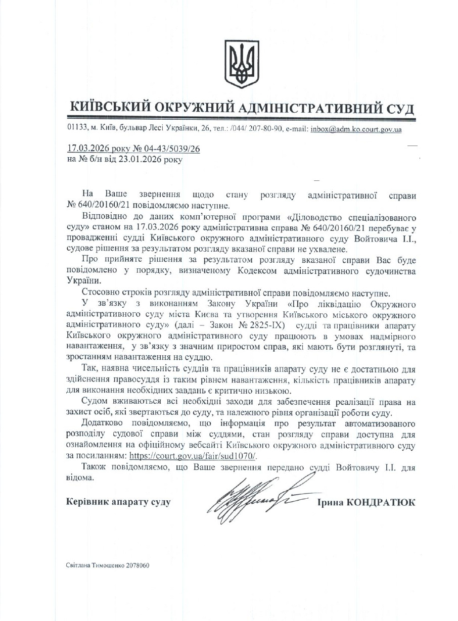 Відповідь на звернення від 23.01.2026